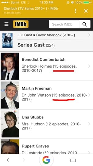 I don’t know if anyone has pointed this out or asked about it (if someone has then I would love the link explaining it) but I noticed something today while looking at Sherlock’s IMDb page…