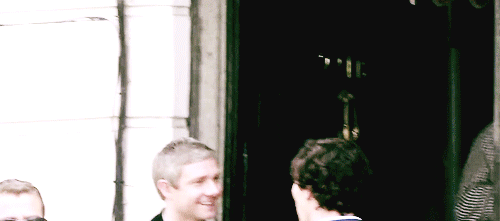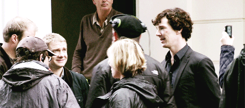 Benedict/Martin + Laughing on the set of ‘Sherlock’