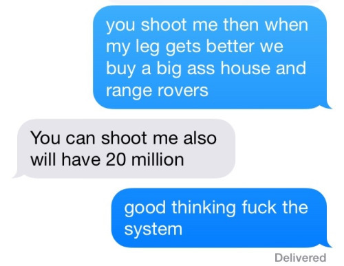 Better still, do it in Canada where there are no hospital bills. I’m down if anyone wants to shoot me in the leg.