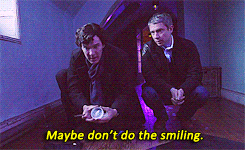Sherlock faking/dropping smiles, versus real smiles reacting to John when he isn’t looking. Thanks to @therealtobyhooper for gif suggestion and @bandersnatchmycummerbund for tagging me! (post)