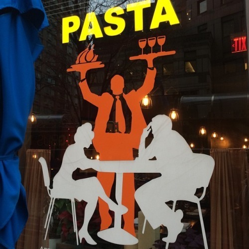 -the sign says PASTA as if he’s screaming it like a frankenstein