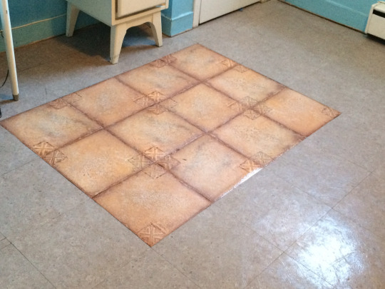 there were muddy handprints all over the wall where my landlord and his guy replaced the ceiling (the ceiling caved in)the floor was filthymy wooden chair (I possess exactly two chairs, a wooden one and my desk chair) was covered in muddy footprints and handprintsall of the papers on my desk were moved to the kitchen table and unceremoniously mixed with the papers that were on my night tablea care package I was putting together for my mother in an open box got dumped out and the box was filled with random other stuff (why?!)it still smells like mouldI guess they tried to move my printer, which sits on a little folding table, and they damaged the printer in doing so (I’m guessing the table collapsed when they picked it up and they set it down without checking, crashing my printer to the floorthe surface of my desk was mysteriously covered in mud and filththey took down some of my wall art but not all of itthey semi ripped down the curtain that partially separates my bed area from the other part of the main room as well as my Christmas lightsfor no discernible reason, they took out one of the lightbulbs in my main room’s light fixture, so now everything’s really dimthey took out SOME of the dirty dishes in my sink (I left in rather a hurry, after all) and put them face down on the counter. I don’t know why they didn’t take all of them out. Clearly they wanted to pour dirty water down the drain - I know, because they clearly did, as the other dishes still in the sink were holding muddy water and bits of plaster from my wrecked ceilingall of my bedding and towels were either wet or filthy. I’ve already spent $18.75 on laundry and it’s not finished yet, and that was with a dryer I had to shake vigorously to force it to take my loonies (one-dollar coins to you non-Canadians)they randomly put my space heaters in the bathroomit took me ten minutes to find my laundry detergent because they put it in my closetthey unplugged my lampsthey moved my suitcases from under my bed to the corner of the kitchen (again, WHY?!)they put all of my shoes under the sofa (WHY?!)they put the muddy wooden chair back by the kitchen table and cover it with stuff (so I wouldn’t notice how dirty it was?!) the kitchen ceiling now leaks a bit from upstairs and it didn’t before (it was the main room ceiling that caved in)Also, just for fun: several of the floor tiles were curling because of the water damage, so my landlord patched the floor. With leftover linoleum from the kitchen. It looks amazing. It looks like I hid a body there. Lookit: