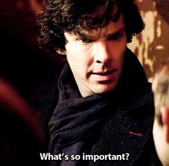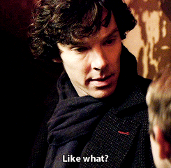 What kills me in this is the fifth gif. Sherlock’s in a hurry, totally impatient with the fuss John’s putting up, yet he needs to know what John means and hates having to ask. But he needs to know and he DOES ask, despite being preoccupied. (And Benedict just plays these little details so incredibly well, too.) Poor Sherlock. By series 3, he definitely wouldn’t have need to ask this…