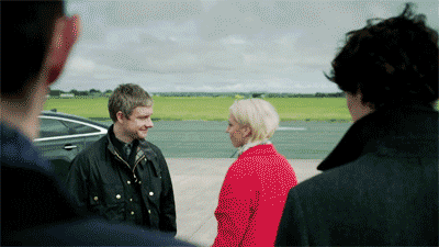 Hmm. But I just noticed… what’s with John’s little nod there? It’s not to Mary, but to Sherlock. I’m sure it’s nothing. Just I never noticed the nod before I giffed this.