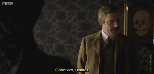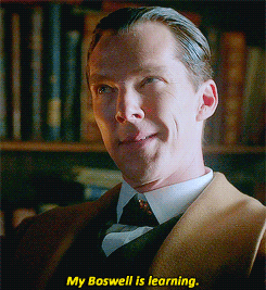 My Boswell. My Boswell. This is their version of foreplay. Look at the glint in Sherlock’s eye in his first gif, and the wattage of his smile in the second. It’s practically indecent! :))))