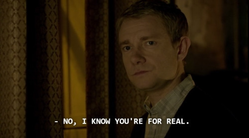 I agree for the most part, but there’s something that people regularly overlook when discussing this scene. It’s slightly contradicted in John’s blog, but I think it’s in the casebook that states that John was using Morse code to signal SOS to Sherlock, to let him know that he was in trouble. So when Sherlock says “John, what the hell - ”, it could be that he doubts for a split second before he starts registering John’s blinking. That could be. After all, he’s never known anyone that he COULD trust before, and John patently does not trust Sherlock’s intentions, as demonstrated by their argument earlier, and the way John questions Sherlock in the lab. Trust is simply not part of Sherlock’s life. No one trusts him or his motivations and he trusts no one and nothing in return.
