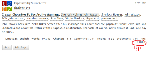 Whoa, crazy!! Sorry to do another of these posts so soon (I only do it for 10K milestones!!), but Paparazzi just reached 20,000 hits today!!! I was always surprised by how popular these little story was, right from its beginning! Thanks for reading it and giving it love, you guys! I am so lucky to have such amazing readers! Thank you!!!!