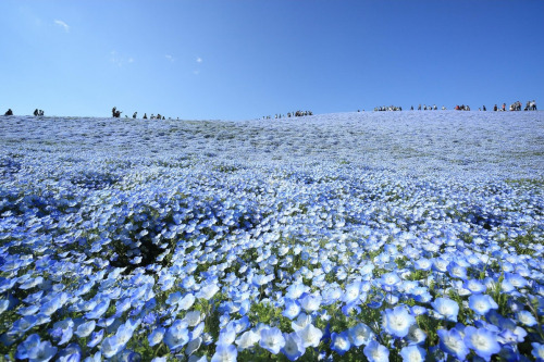 Blue Flowers of Hitashi Seaside Park in Japan via...