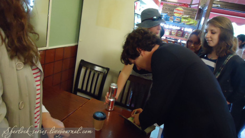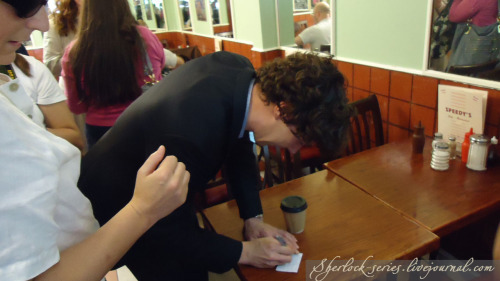 Benedict Cumberbatch Signing autographs and meeting fans inside Speedy’s and on the streets while filming Sherlock