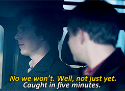 Look how Sherlock looks away to hide his smile yet again. He just loves this, going in to mess around and get into trouble, with John by his side, making sarcastic quips throughout. And John loves it, too. They are just so happy together.