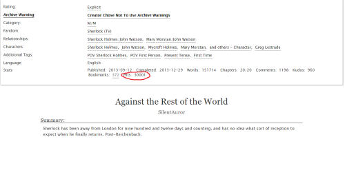 My 20-chapter epic Reichenbach hiatus/return novel Against the Rest of the World has just surpassed 30,000 hits as of this morning!!! This is only the second of my stories to pass this milestone and I’m so terribly pleased! Though I’ve written so much more since this one, this remains my magnum opus in many ways, not least for the sheer amount of plotting and research (particularly location research!) that went into this! This story is set in London, Antalya (Turkey), Nicosia (Cyprus), Berlin, Edinburgh, Doha (Qatar), Sana’a (Yemen), Frankfurt, and Hamburg, with brief references to other places as well. The plot itself is also somewhat complex, plus there’s a romantic subplot between Sherlock and John, naturally. The entire thing is written in first person perspective from Sherlock’s POV and goes into intense detail regarding his insecurity in terms of John, a first relationship, and trying to balance international spy drama with such a momentous personal thing for him as well.