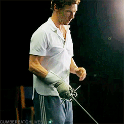 Benedict during fencing rehearsals for Hamlet (from Hamlet digital programme, available here for iPhone/iPad)