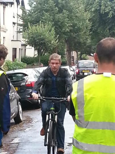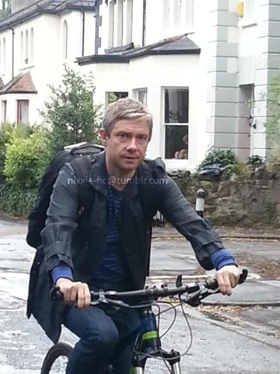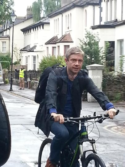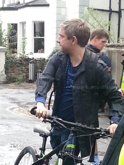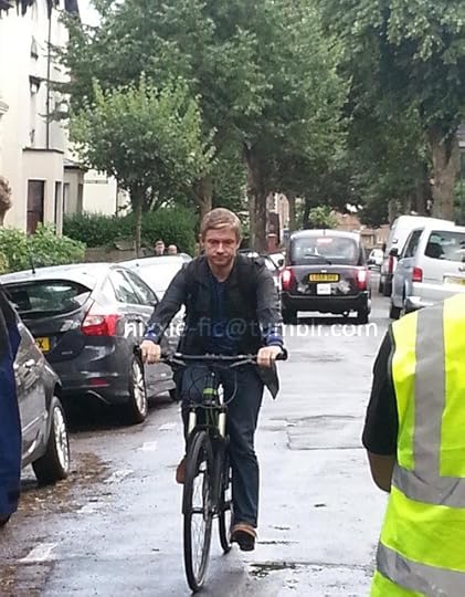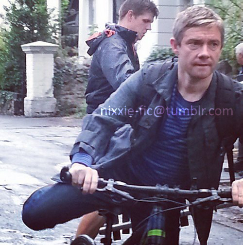John Watson on a bike - possibly shot to be inter-cut with the Bill Wiggins deduction scene in Bart’s lab - but never used. I squeaked when I first saw them!!