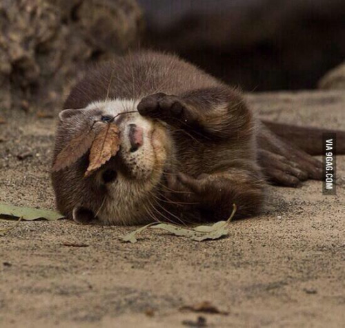 Look at this otter! He found a leaf! And he likes it!! My heart hurts! <33333333333