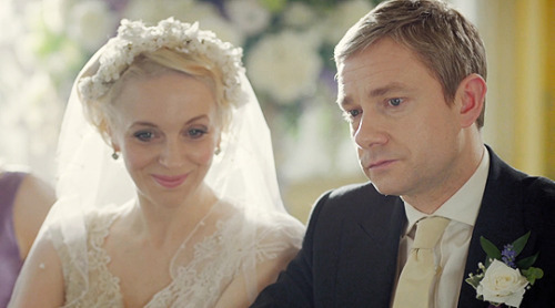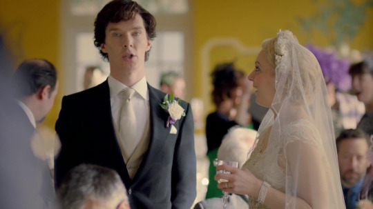 The looks on these faces were not accidental. The director didn’t decide they were “good enough to pass”. Benedict and Martin were instructed to look like this: regretful and yearning and not very happy for being at a wedding.