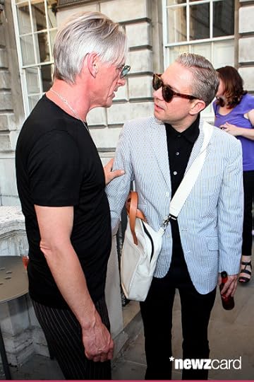 pt 1 - Martin Freeman being a cute little bugger at the private viewing of The Jam today (& bonus Arthur Darvil) (x)