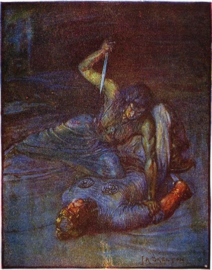 In one sense, the reader can sympathize with her. Sure her only child was a monster (literally), but he was still her son. And she, like the humans, will avenge her dead loved one. She claims the king’s right-hand man the very night Heorot Hall celebrates Grendel’s demise.
