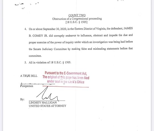 Last week former James Comey was indicted on two counts by a grand jury in the Eastern District of Virginia – false statements and obstruction of justice.