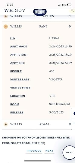 But it turns out Willis herself flew up to DC and met with the White House on February 28, 2023. The record shows that one of the individuals she apparently met with was Kamala Harris (Note VPOTUS in the record).