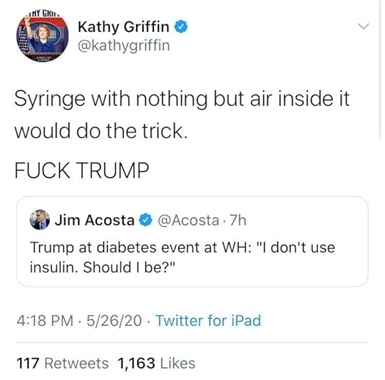 “Syringe with nothing but air inside it would do the trick,” Griffin said in a tweet responding to Jim Acosta.
