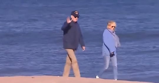 Biden shuffled along the beach last Sunday as he callously ignored reporters shouting questions about Americans held hostage by Hamas.