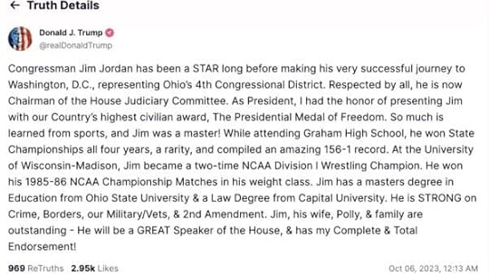 UPDATE: Donald Trump Officially Endorses Jim Jordan for Speaker of the House | The Gateway Pundit