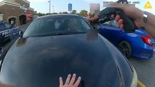 The bodycam footage shows a Kroger employee approaching the police officers and telling them that several people had just stolen merchandise and taken off. The Kroger employee pointed to Ta’Kiyah Young, who was sitting “in a Lexus sedan with no license tags parked in a handicapped spot right in front of the store.”