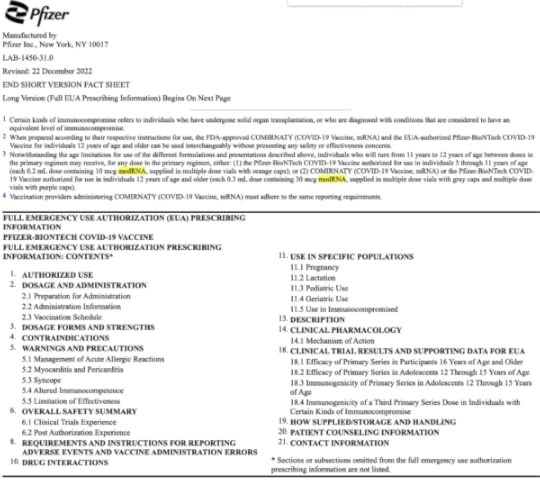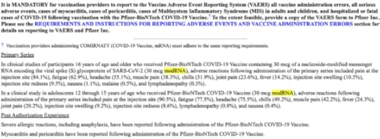 Source: labeling.pfizer.com/ShowLabeling.aspx?id=14471Pfizer admitted that during its clinical studies, participants aged 16 years and older received 30 mcg of nucleoside-modified messenger RNA (modRNA).