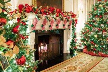 Stockings hung in 2021 over the fireplace mantle in the State Dining Room for only six Biden grandchildren