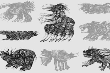 Los dibujos en blanco y negro de los multipatópodos descritos.