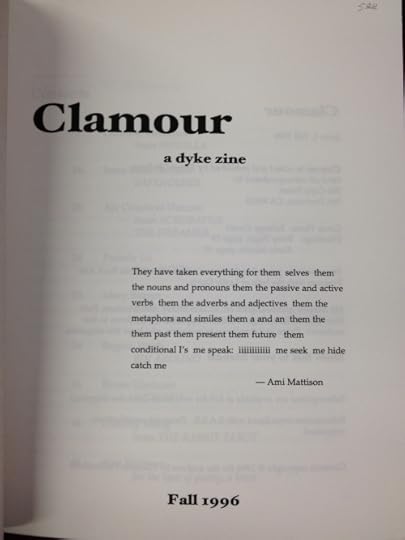 In advance of writer Renee Gladman’s reading here in Madison on Friday, March 20, with Felix: A Series of New Writing, we had a fun discovery that our Little Magazine Collection holds all four issues of a magazine Gladman published from 1996-1999 called Clamour: a dyke zine.