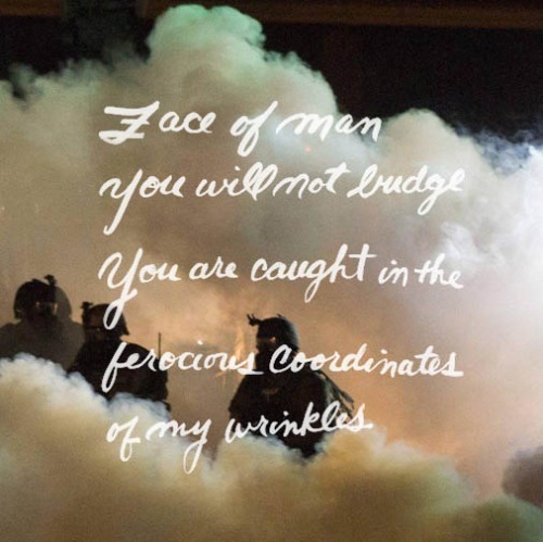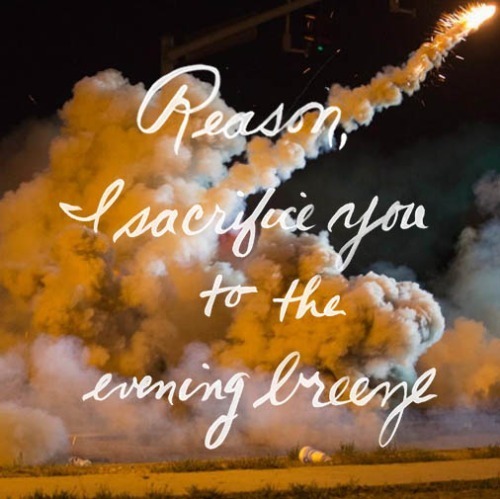 "The images were paired with quotes and titles from Black Surrealist poet/activist/ Aimé Césaire. I felt a strong connection to the themes of autonomy, post-colonial identity struggle and resistance in Césaire’s work when studying the images being disseminated from Ferguson. The images have been sourced and tightly cropped from online news sites. The hand-lettering was done by me." - Ariel Roman
