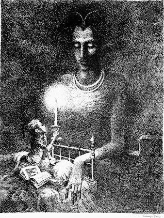 Giraudon’s operational field is a mythic space unpolluted by references to contemporary cheese culture; her characters breathe the sterile air of psycho-emotional vacuum. Her plots and themes are enigmatic and border on the unreal, if not, at times, the non-representational; but there are badges of familiar sensibility—a preoccupation with victims and victimization, revenge motifs, and acts of unrepentant enmity—conspicuous hallmarks of the cruel tale. Her inventory is stocked with fetish and fixation, aberrant behavior, medical anomaly, atavism, evolutionary warpage, and creatic compulsion. Her characters are wounded souls, lost, lonely, often self-loathing; insular anti-heroes whose private hells slowly unravel to reveal a barely controlled hysteria. Their secret selves, propelled by instinct and animal drives, are awash with dark undercurrents of primal savagery; held in bondage by a sensuality which starts out where D. H. Lawrence left off, they grope in a stew of dream and desire, around which the deformed, the disfigured, and the denatured do a dance for domination. These prisoners of the flesh, beset by strange obsessions, teased by Aeons and Archons, tortured by twisted eroticism, are gripped by predatory forces to which they are tacitly resigned. The spirit of Dr. Moreau is everywhere: hints at moonspawn and mutant progeny abound; insinuations of union between man and beasts accentuate an exploration of biomorphic boundaries and what defines them.