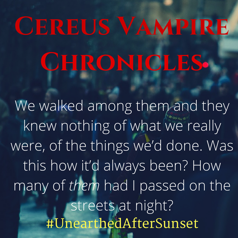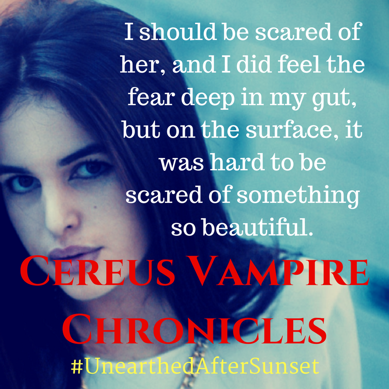 I tweaked a few other things, but if you want to know what other twists I took on the stereotypical vampire mythology you’ll have to read Unearthed after Sunset.