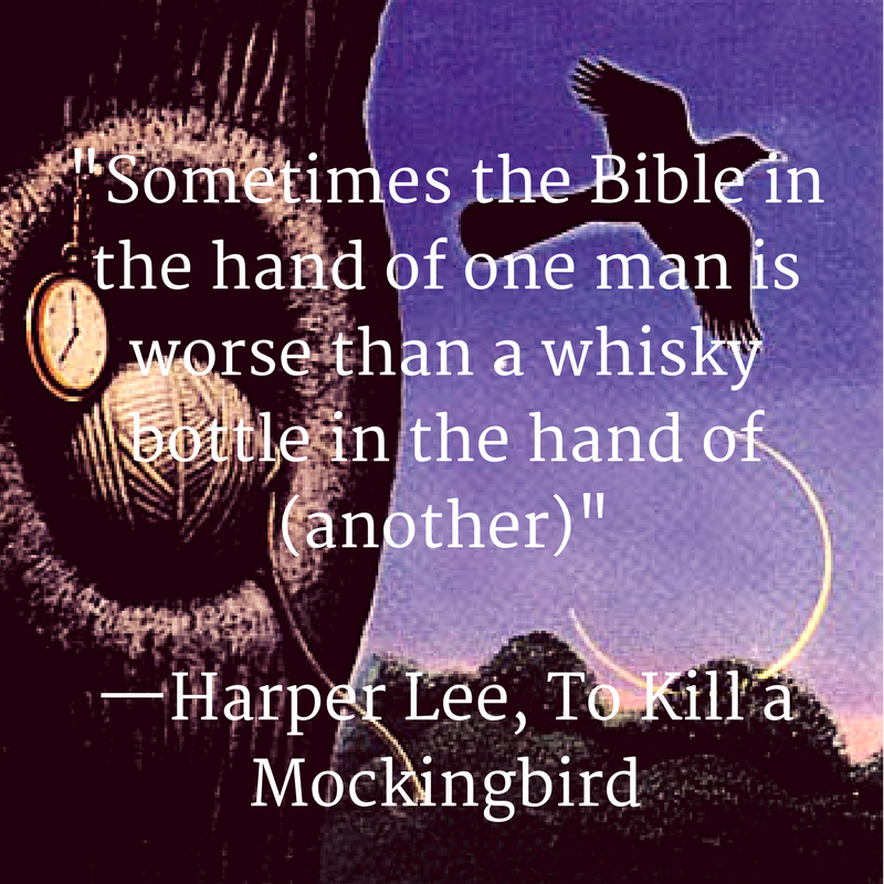 "Sometimes the Bible in the hand of one man is worse than a whisky bottle in the hand of (another)." - Harper Lee, To Kill a Mockingbird