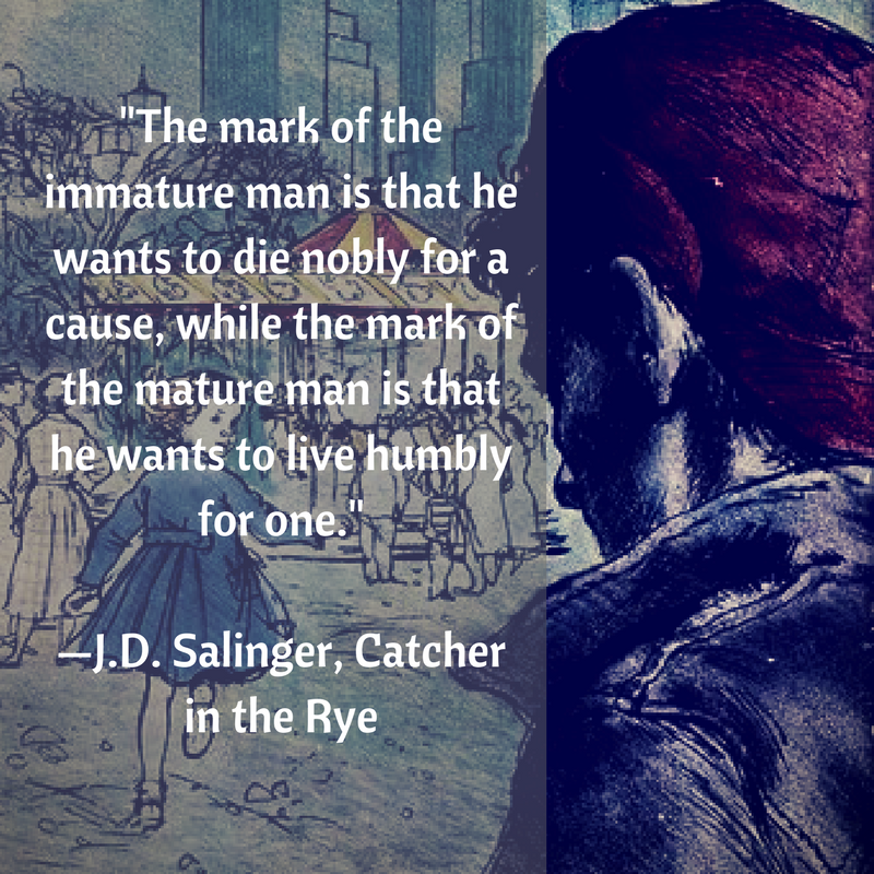[image error] "The mark of the immature man is that he wants to die nobly for a cause, while the mark of the mature man is that he wants to live humbly for one." - J.D. Salinger, Catcher in the Rye