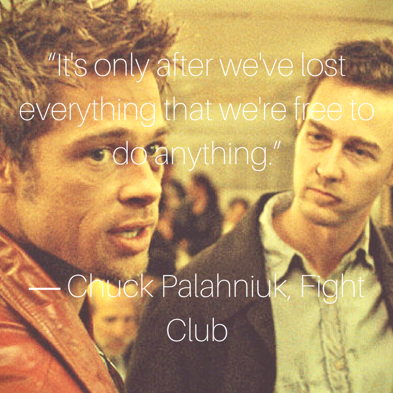 "It's only after we've lost everything that we're free to do anything." - Chuck Palahniuk, Fight Club