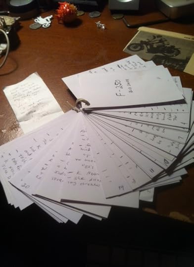 When all of that was done … I started making these … index cards, each index card is a 1200 word approx. scene.