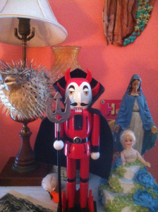 Got my plane tickets to New Mexico for a big day of the dead celebration that I’m taking Spout to. Got a shit load of Halloween stuff. Set up my devil statue next to the Virgin Mary …
