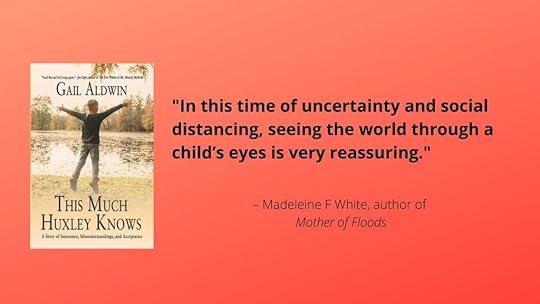 This book surprised me. It’s an innovative, delightful, and insightful story told in first person by a child. The narrator, Huxley, is an innocent, playful, provocative seven-year-old, an “only lonely,” (no siblings), who is achingly searching for a true friend and pushing those around him to be caring and reasonable. What is so extraordinary is that Gail Aldwin beautifully transports the reader inside Huxley’s head and heart.
