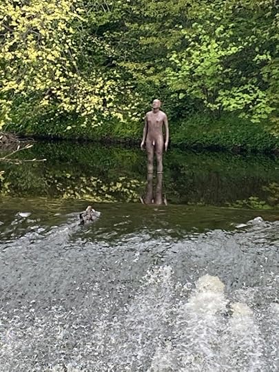 We are renting a flat in Stockbridge which is a few minutes from the walkway of the Water of Leith. From there we can stroll to the sea or go further around the city. The paths are like nature reserves although recently there’s been a distinct pong from the wild garlic. (The figure in the water is by Anthony Gormley.)