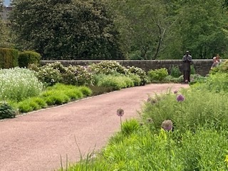 We’re making the most of the little time with have left in Edinburgh with yet another visit to Saughton Park. A walk along the Water of Leith from Stockbridge eventually arrives there. With formal gardens including herbaceous borders as well as neatly-clipped yew hedges, flower and heather beds, what’s not to like? I also admire the renovated bandstand and who can resist a bacon roll from the cafe?