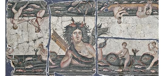 A 5th century Roman mosaic of Thalassa in the Hatay Archaeological MuseumWe watched a video of wild swimming and drew upon our own experience of swimming in the sea to write for twenty minutes about the sea as a person. We did this by thinking about the physical characteristics of a personified body of water and also the communication skills of this character.
