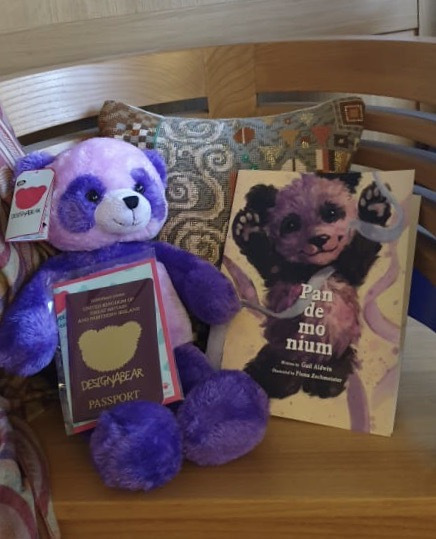 Since the start of November, I’ve posted photos on social media of a cheeky purple panda who’s out and about. This is to help promote my forthcoming children’s picture book Pandemonium. In case you don’t follow me on Twitter @gailaldwin, here’s what’s been happening this week.