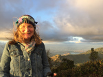 With my teacher, Jasmin. (See the smoke coming from the volcano in the distance.)