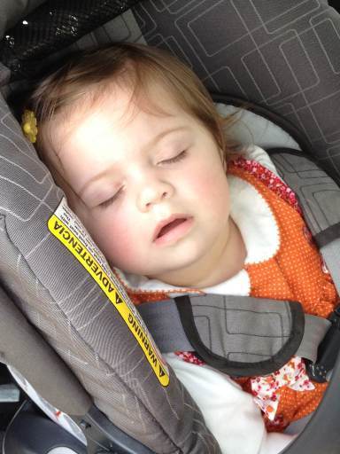 When we got home we found out Grandma was feeling ill, so no visit. Daddy/Daughter day continued with the mundane task of grocery shopping – which I had planned to do while grandma watched the baby. This is how the afternoon ended. My little angel.