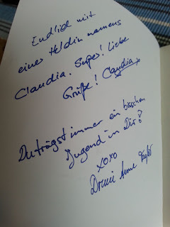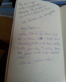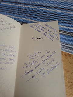 In diesem Jahr habe ich beschlossen, diese Erinnerungen zu „dokumentieren“. Ich habe die Leserinnen und Leser, die Buchbloggerinnen und –blogger, meine Autorenkolleginnen und –kollegen gebeten, mir etwas in eines meiner Bücher zu schreiben – quasi als eine Art umfunktioniertes Poesiealbum.