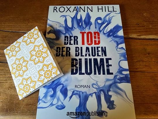 Ein Geschenk von Amazon Publishing, meinem Verlag - das Cover meines neuen Romans "Der Tod der blauen Blume" als Bild zum Aufhängen und eine total nette Glückwunschkarte, unterschrieben vom gesamten apub-Team.