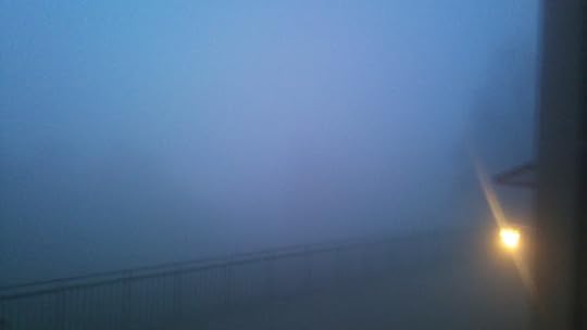 Für die nächsten sieben Tage befinde ich mich auf einem Seminar. Diesmal in Gerolfingen/Hesselberg. Ich sage euch, es ist richtig kalt hier oben. Und es ist seit heute früh neblig. Die Schwaden sind so dick, dass man nur zwei, drei Schritte weit sehen kann, dahinter verschwimmt alles zu undefinierbaren Umrissen.