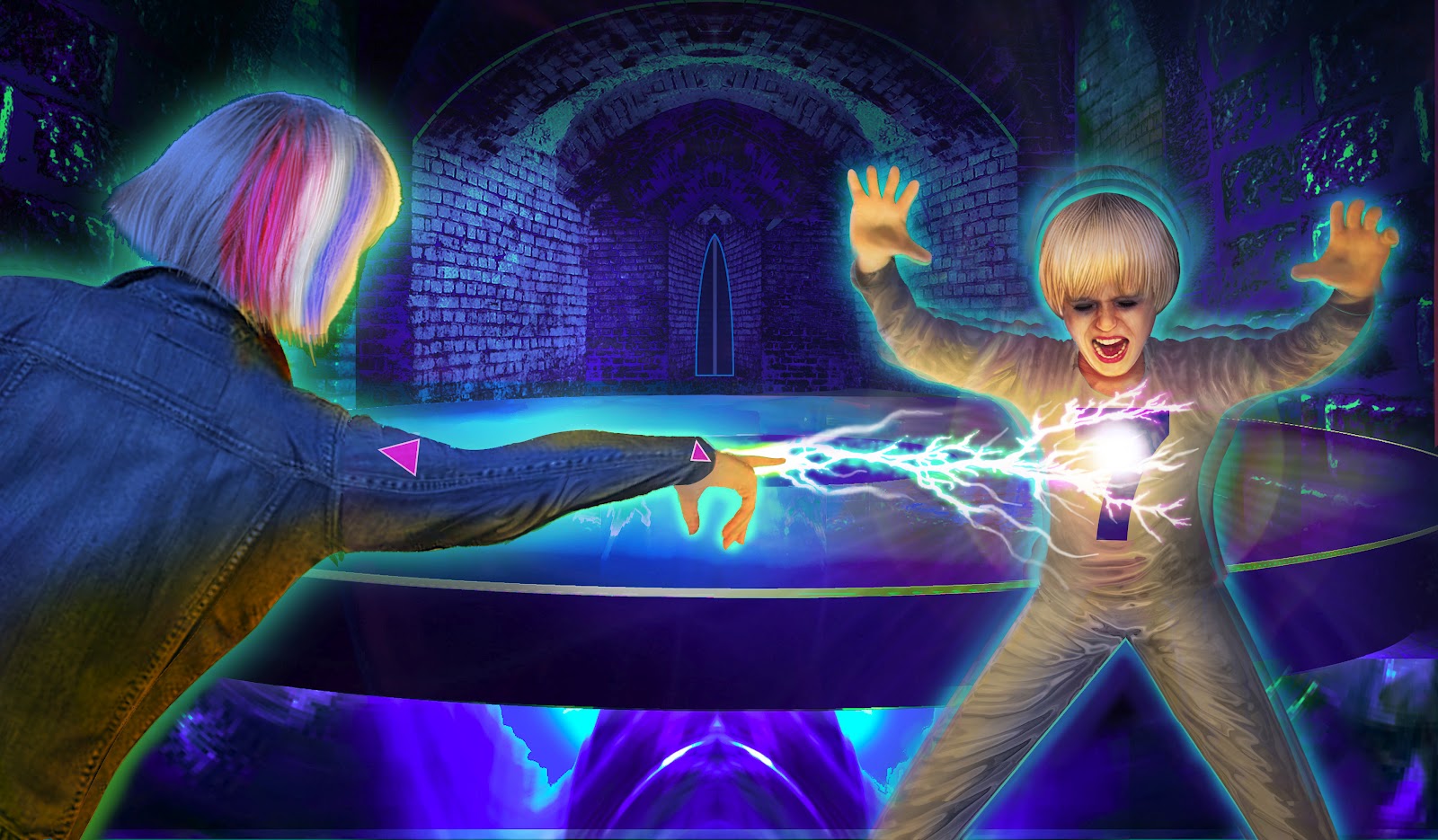 Here is Matt Curtis's illustration for chapter 17. This is Tova2 punishing Paul7 by shooting him with a lightning bolt strong enough to cause extreme pain but not damage him.